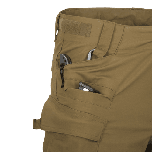 Los pantalones militares SFU Next Mk2 cuentan con ocho bolsillos cuidadosamente diseñados. Dos bolsillos delanteros clásicos, ubicados en las caderas, se han reforzado para reducir el riesgo de daños causados por el cargador de un cuchillo o una linterna. Los bolsillos laterales tipo cargo en los muslos se cierran con velcro y botones. Los pantalones de combate también cuentan con un bolsillo adicional con velcro a la altura de la pantorrilla, ideal para guardar un botiquín de primeros auxilios. Los bolsillos traseros se cierran con solapas.